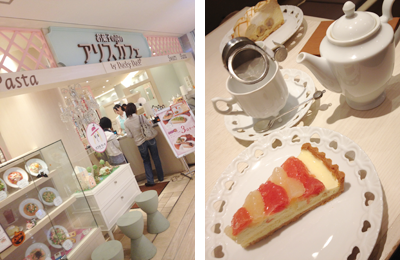 ビュッフェで食べ過ぎた後の晩ご飯はケーキ! ということで、実はこの日の目的であった『お菓子の国のアリスカフェ』へ。