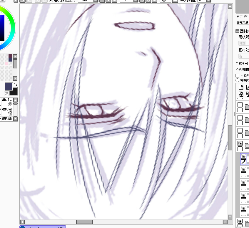 線を引きやすい方向にキャンバスを回転させながら描くのですが、気がつくと上下逆さまになっていることも多く。で、逆さまから見て「あれ?そこそこ上手く描けてる?」と思い正位置に戻したら、まぁ普通、という感じて、逆さまから見ると良く見えたりするよねと……